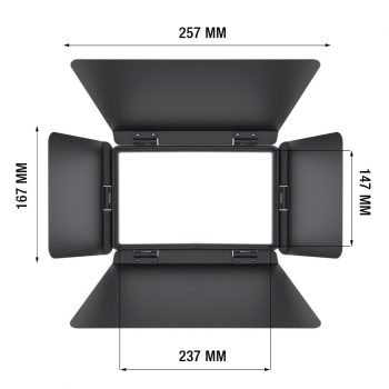 Hinweis : Zur Montage dieser 4-Blatt-Haube am W300-Projektor muss der Halter AW300-005 montiert werden . Dieser ist als separates Zubehör erhältlich. Mit diesem Halter können auch die Diffusionsfilter am Gerät montiert werden.Vorrätig (kann nachbestellt werden)