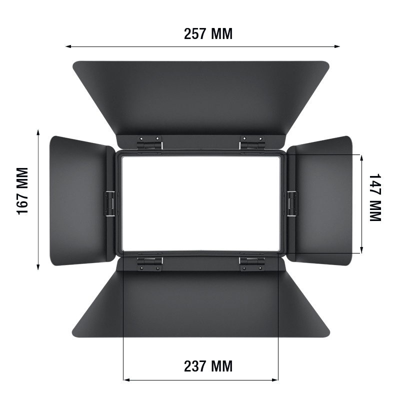 Hinweis : Zur Montage dieser 4-Blatt-Haube am W300-Projektor muss der Halter AW300-005 montiert werden . Dieser ist als separates Zubehör erhältlich. Mit diesem Halter können auch die Diffusionsfilter am Gerät montiert werden.
