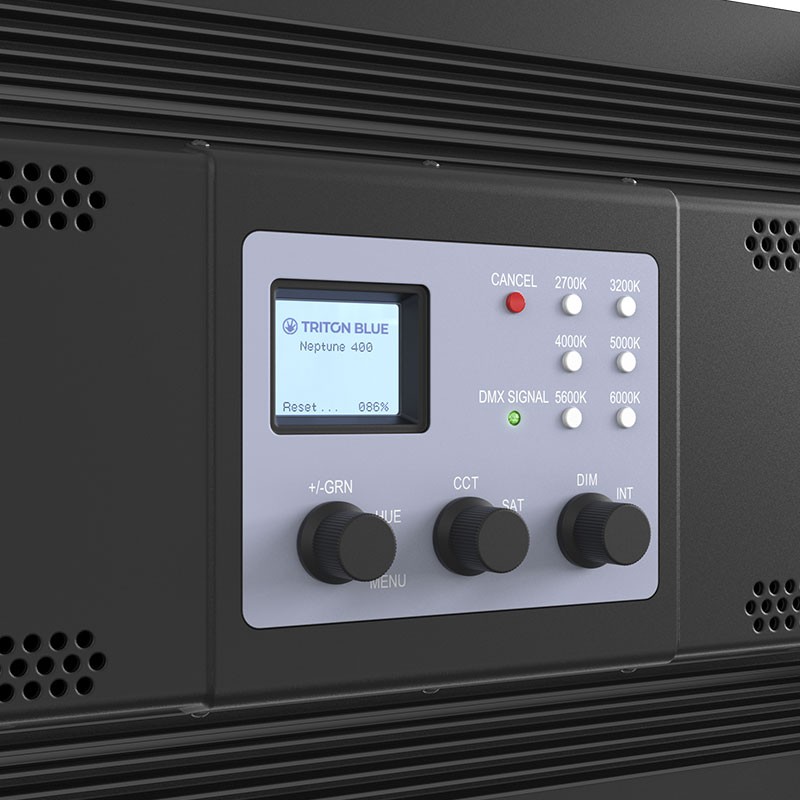 Das Triton Blue NEPTUNE 400 ist ein leistungsstarkes LED Softpanel, konzipiert für anspruchsvolle Studio- und Produktionsumgebungen. Es bietet stufenlose CCT-Einstellung 2.700–10.000 K, sehr hohe Farbwiedergabe (CQS/CRI/TLCI > 96-97) und einen großen 110° Abstrahlwinkel für großflächige, gleichmäßige Ausleuchtung. Mit wählbaren Dimmkurven, integriertem Strobe und professionellen Steueroptionen (DMX / RDM / Art-Net / sACN) ist das NEPTUNE 400 die perfekte Wahl, wenn maximale Ansprüche gefragt sind