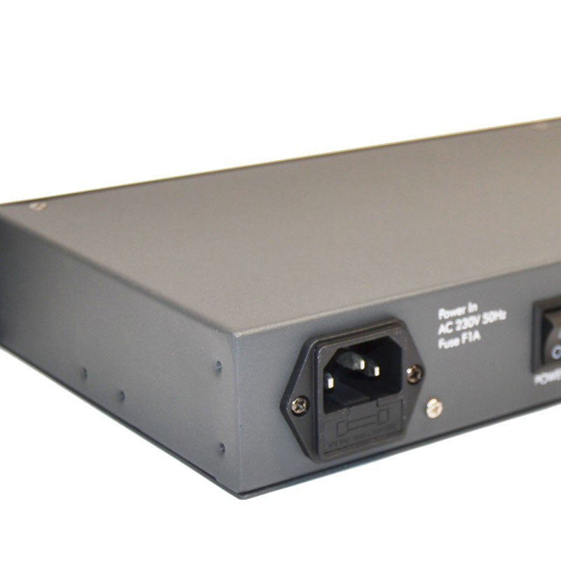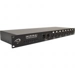 - Ausgänge: 4 x 3-polige XLR-Buchsen und 4 x 5-polige XLR-Buchsen auf der Vorderseite.