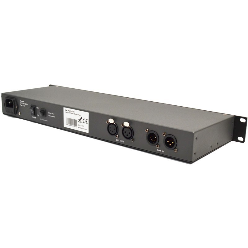 Es dient als Signalverteiler und -verstärker. 1 DMX-Eingang und 4 DMX-Ausgänge, jeweils ausgestattet mit 3- oder 5-poligen XLR-Anschlüssen, gewährleisten die Kompatibilität mit jedem DMX-Setup und gewährleisten 100%ige elektrische Trennung zwischen allen Ein- und Ausgängen. Die Booster-Funktion analysiert die eingehenden DMX-Daten und rekonstruiert sie, bevor sie verstärkt werden. So können die Daten ohne Signalprobleme weiter über die DMX-Leitungen weitergeleitet werden. Dank LED-Anzeigen für Signal und Strom lassen sich einzelne Kanalfehler leicht erkennen. Ideal für Festinstallationen, mobile Shows, Vermietung etc.