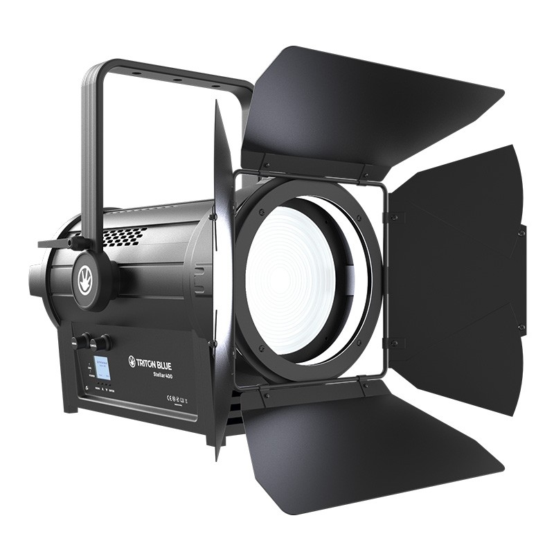 Der Triton Blue Stellar 400 ist ein professioneller RGBAL 5-in-1 LED Fresnel mit 400 W Leistung, ideal für Studios, Theater und Events, bei denen kräftige Lichtleistung, exzellente Farbwiedergabe und flexible Steuerung gefragt sind. Er bietet einen motorisierten Zoom von 10°–50°, eine hochwertige 175 mm Glas-Fresnel-Optik sowie eine stufenlos einstellbare Farbtemperatur von 2.200-8.500 K. Dank CRI ≥95 / TLCI ≥96, auswählbarer PWM-Frequenz bis zu 25 kHz und präziser Steuerung über DMX/RDM liefert der Stellar 400 flimmerfreie Key- und Spot-Lichtqualität, ideal für Broadcast und Nutzung mit Kameras. Robustes Aluminiumgehäuse und zuverlässiger Aufbau machen ihn zur Top-Wahl für anspruchsvolle Produktionen.