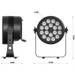 | Lichtquelle & Optik | LEDs | 18 × 10 W RGBWA+UV (6-in-1) |