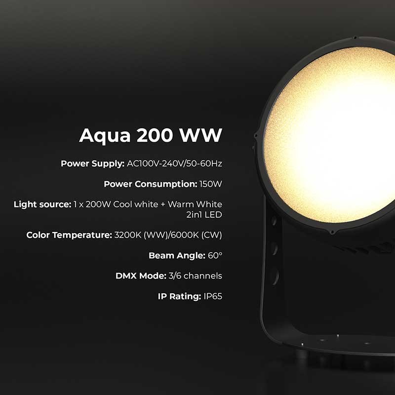 Der Triton Blue Aqua 200 WW überzeugt mit einer 200 W COB-LED in Warm-/Kaltweiß, die für präzise Farbtemperaturen und hohe Lichtqualität sorgt. Ob Theater, Studio oder Outdoor-Event – dieser IP65-geschützte Scheinwerfer liefert kraftvolles Weißlicht mit exzellenter Dimmbarkeit, flimmerfrei und absolut zuverlässig in jedem Einsatz.