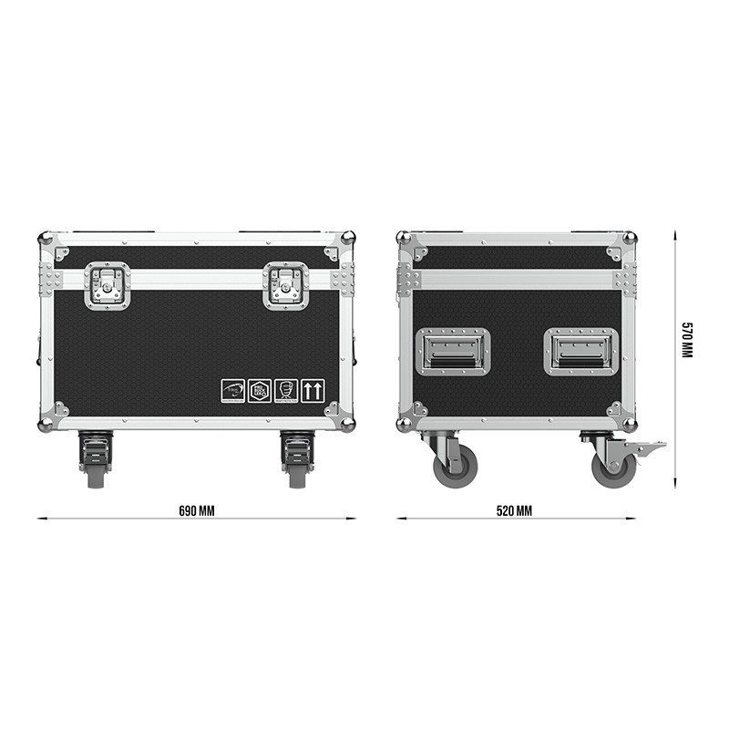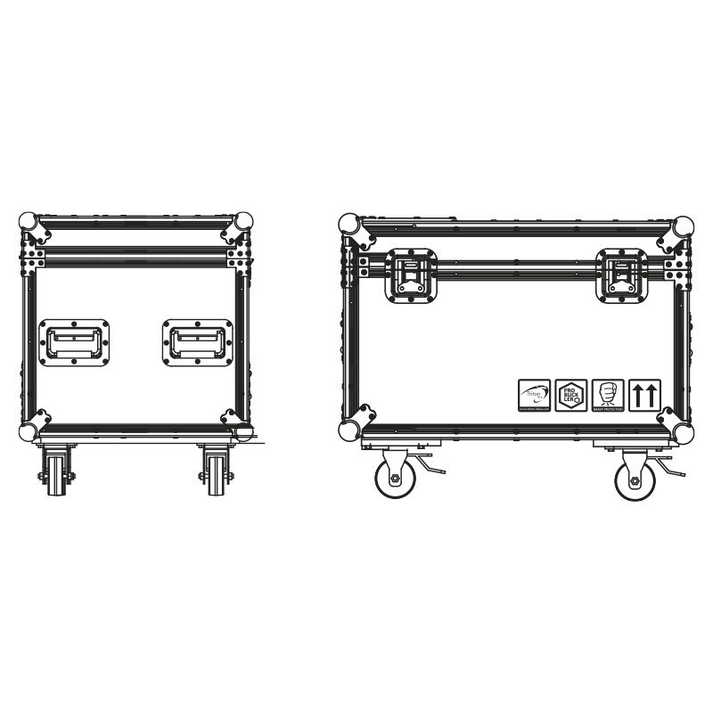 - 4 versenkte Griffe (zwei auf jeder Seite des Flightcase)