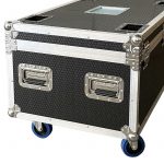 Klappdeckel mit 4 montierten Radsockeln zum einfachen Stapeln mehrerer Flightcases