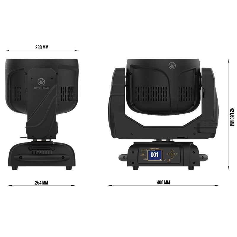 Die Triton-Blue 480 SOLAR ist ein leistungsstarkes RGBW-Beam/Washlight mit 12 × 40 W Hochleistungs-LEDs, das durch präzise Farbmischung, flexiblen Zoom von 4,2°–53° und beeindruckende 18.460 Lux @ 5 m überzeugt. Mit individueller Pixelsteuerung, statischen und dynamischen Makroeffekten sowie einem breiten CCT-Bereich von 2.200–8.000 K bietet sie maximale Vielseitigkeit für Bühne, Event und Installation. Das robuste Aluminiumgehäuse mit IP20-Schutz, flexible DMX-/RDM-/ArtNet-Steuerung und das benutzerfreundliche LCD-Display machen die SOLAR 480 zur professionellen Wahl für kreative Lichtdesigner.