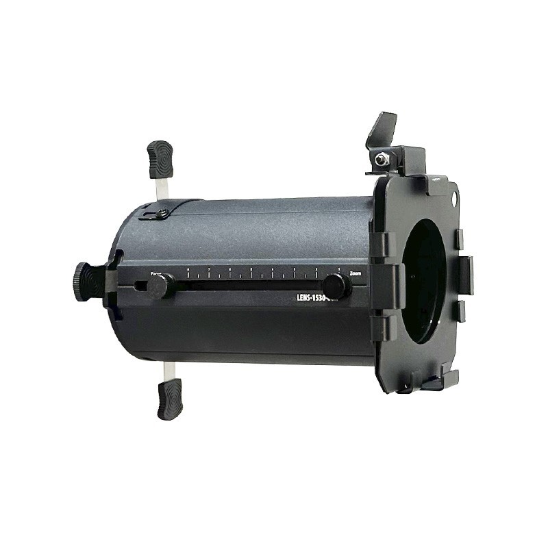 Austauschbare Optiken für den T300 und kompatible Modellen. Für den Einsatz auf Bühnen, in Theatern, Auditorien und mehr. Inklusive Filterhalter und vier Blendenschiebern. Scharfe, hochklare Optik. Maximale Flexibilität durch variablen Blendenzoom mit einem Fokusbereich von 15° bis 30°. Platz für die Installation von Irisblendendurchmessern von 5 mm bis 74 mm für Triton Blue und andere Modelle. Inklusive Platz für die Installation von Gobohaltern.