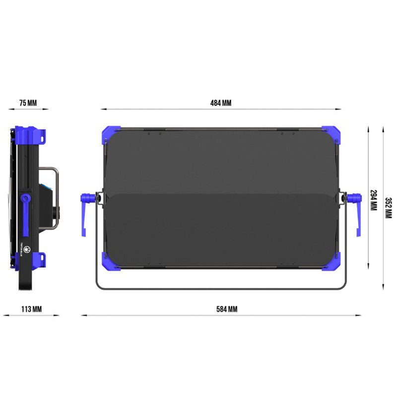 Der Triton Blue Neptune 200 CW+WW ist ein leistungsstarkes LED-Softpanel mit 200 W Gesamtleistung und 448 hochwertigen LEDs (224 Warmweiß + 224 Kaltweiß). Mit einem CRI ≥95, einstellbarer Farbtemperatur von 3.200 K bis 6.000 K und einer Lichtausbeute von bis zu 11.856 Lux @ 1 m garantiert er eine herausragende Farbtreue für Film, TV, Fotografie und Events.