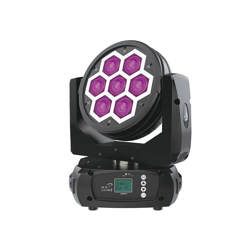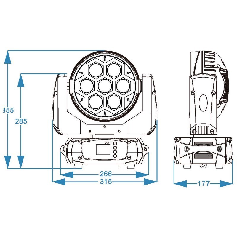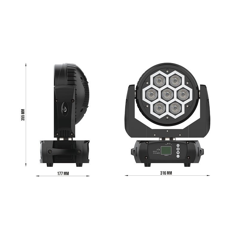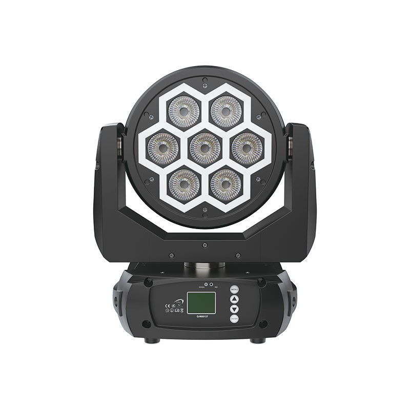 - Leuchtmittel: 7 × 12 W RGBW-LEDs