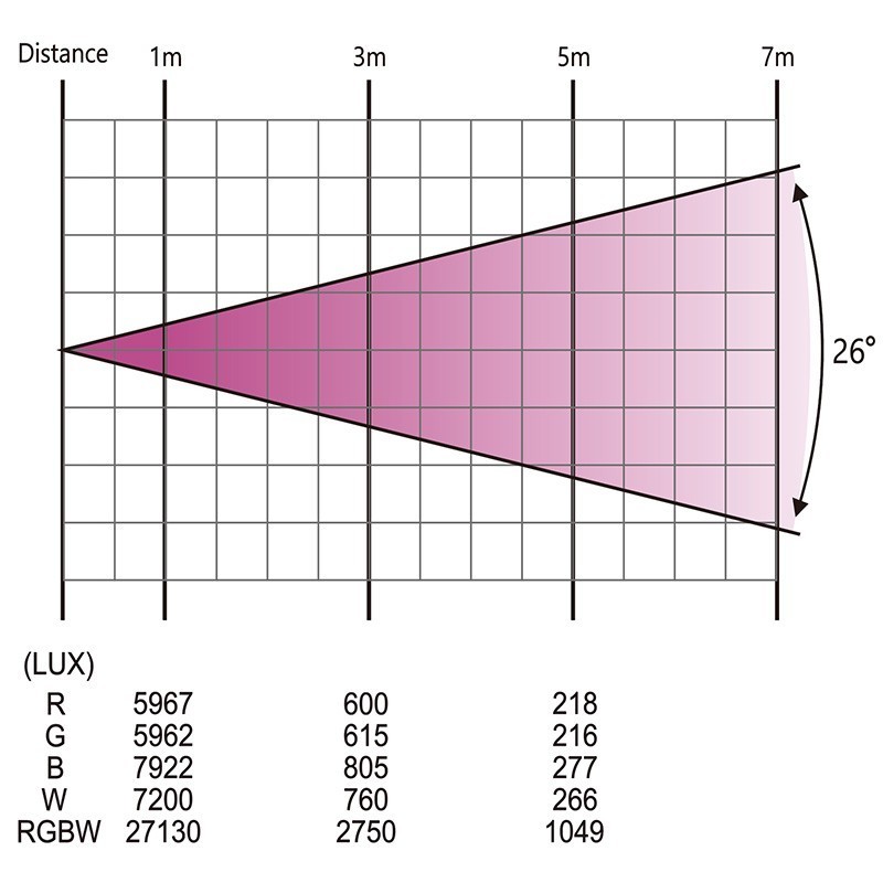 - Lichtstärke: 10.623 Lux @ 1 m (RGBW)