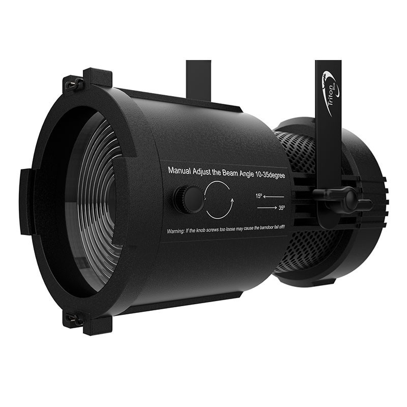 Austauschbare Optiken für den T300 und kompatible Modellen. Für den Einsatz auf Bühnen, in Theatern, Auditorien und mehr. Inklusive Filterhalter und vier Blendenschiebern. Scharfe, hochklare Optik. Maximale Flexibilität durch variablen Blendenzoom mit einem Fokusbereich von 15° bis 30°. Platz für die Installation von Irisblendendurchmessern von 5 mm bis 74 mm für Triton Blue und andere Modelle. Inklusive Platz für die Installation von Gobohaltern.